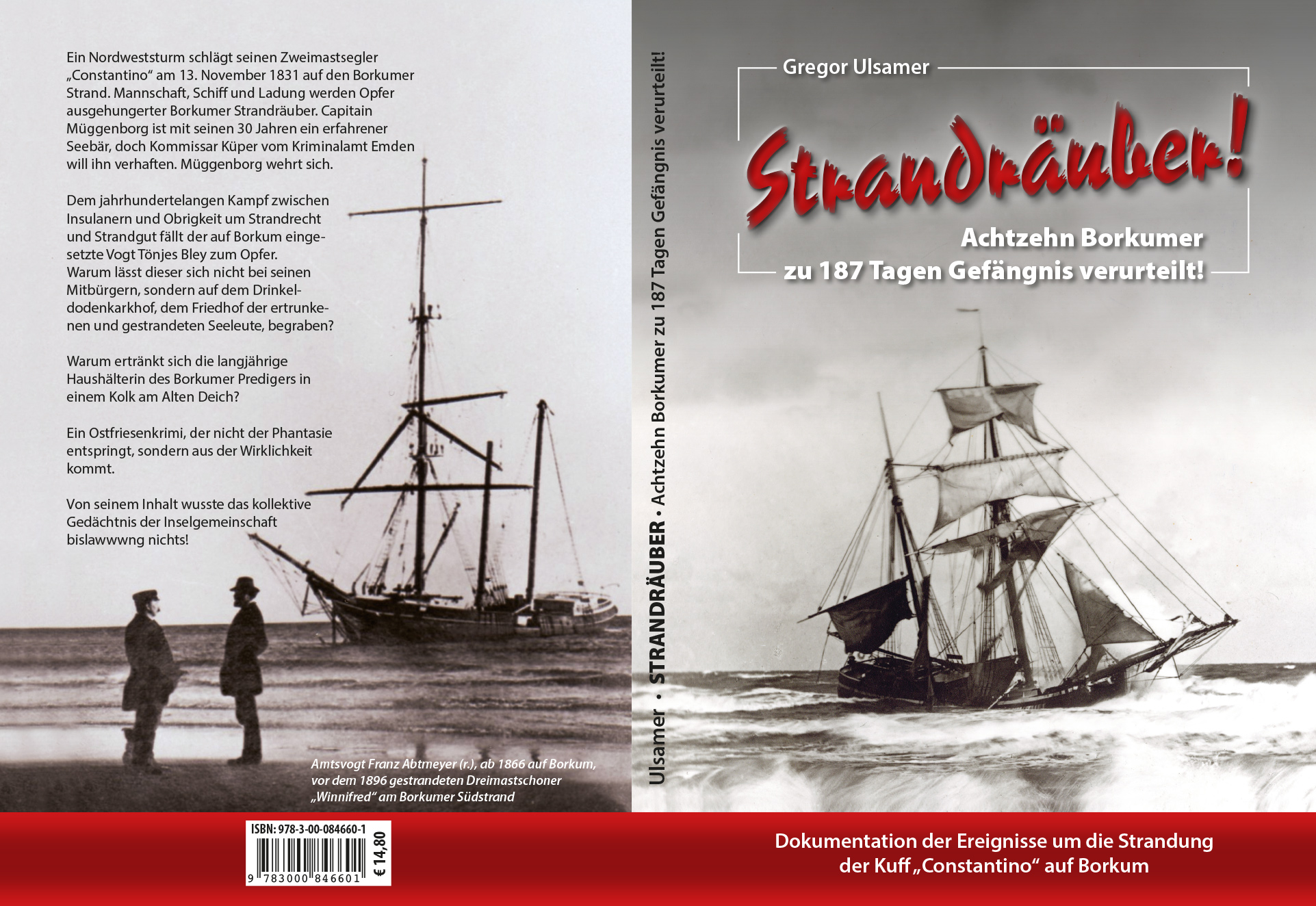 Die Zahl der Schiffe, die vor oder auf Borkum gestrandet sind, ist unbekannt; wir können sie nicht einmal schätzen. Einige Fälle sind mehr oder weniger aufwändig dokumentiert oder aufgearbeitet. Der Fall „Constantino“ war der Öffentlichkeit bislang gänzlich unbekannt. Der langjährige Archivleiter des Heimatvereins, Jan Schneeberg, spürte die zugehörigen Dokumente im Landesarchiv in Aurich auf. Gregor Ulsamer, ehemaliger Vorsitzender des Heimatvereins, nahm sich des Themas an. Die Ergebnisse seiner Recherchen sind in einem Buch zusammengefasst, das nun erscheint. Es trägt den Titel „Strandräuber“ und den Untertitel „Achtzehn Borkumer zu 187 Tagen Gefängnis verurteilt“.